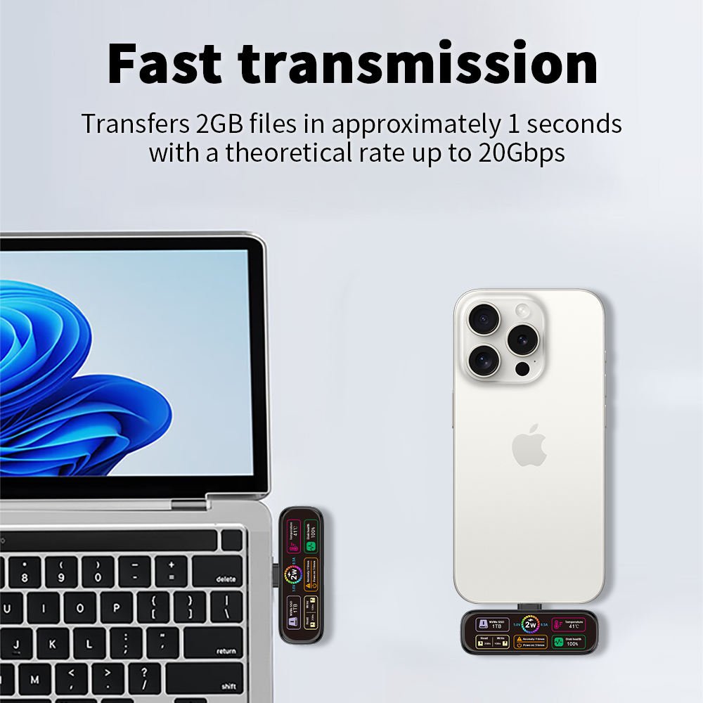 Be the first to review “20Gbps Portable Solid State Drive USB Flash Drive with Magnetic and LCD Screen Display and PD” Cancel reply