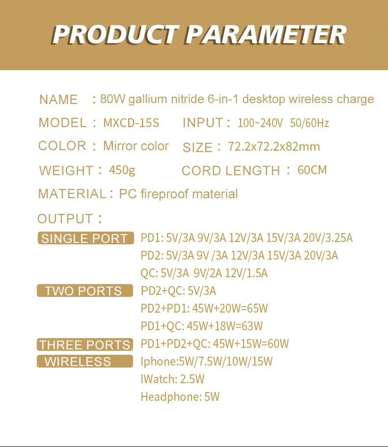 80w 6-In-1 Gallium Nitride Wireless Charger for iphone Iwatch ipad Airpods MacBook