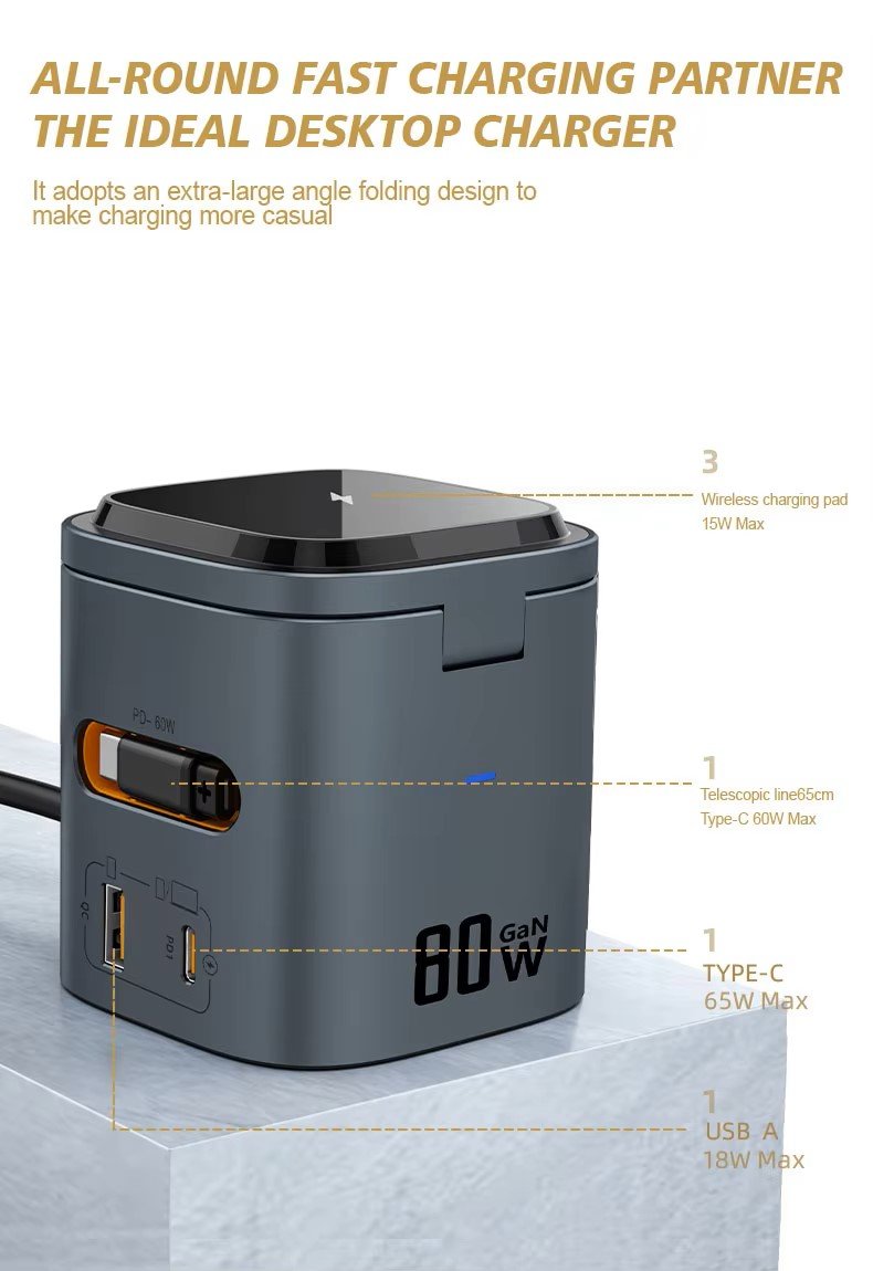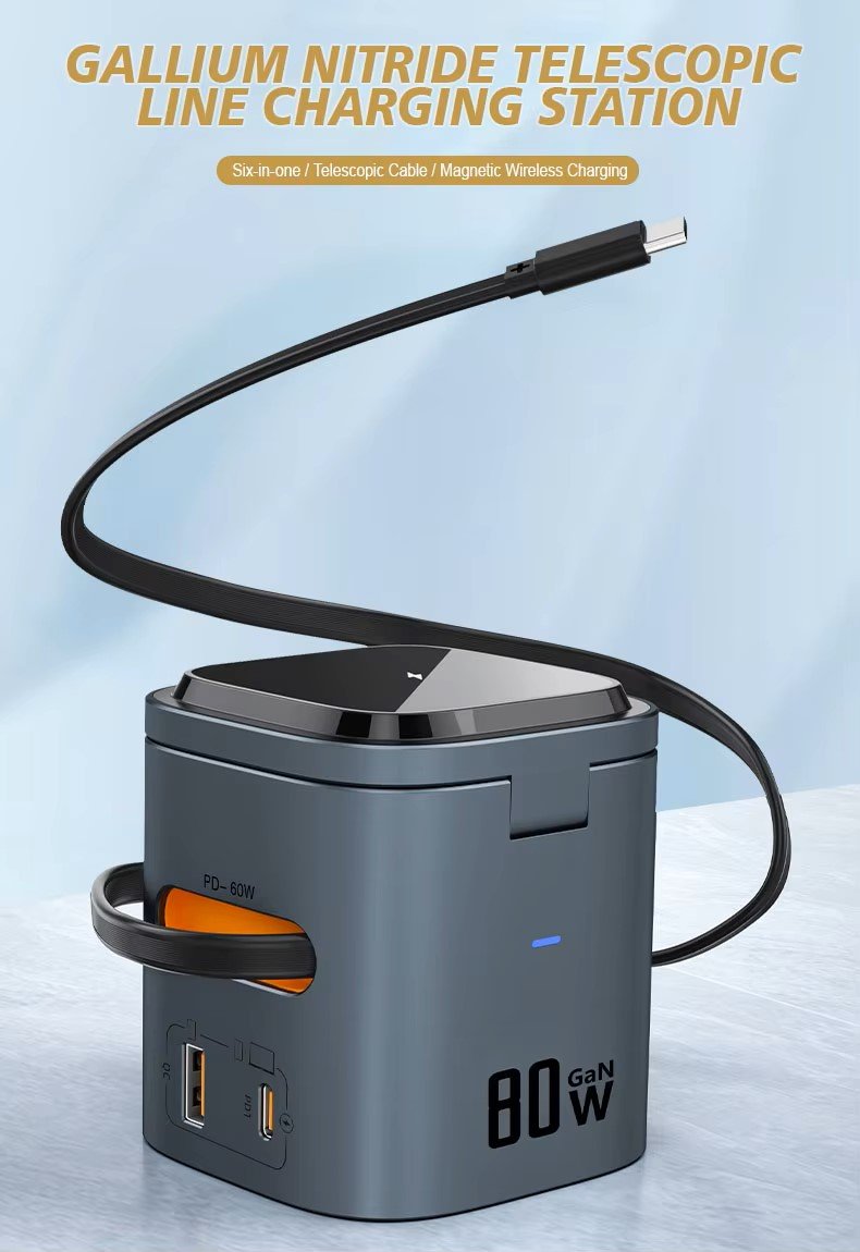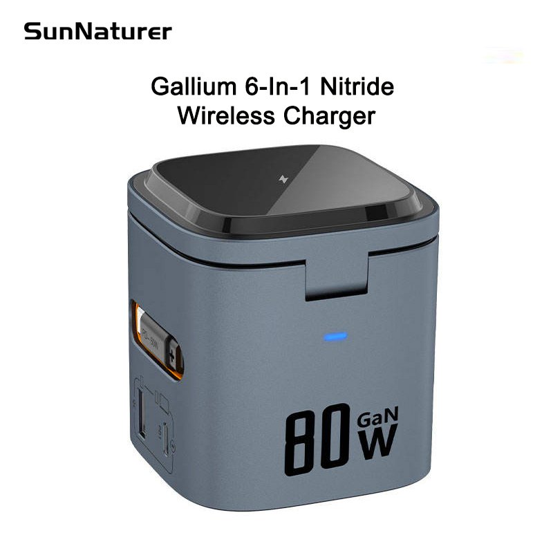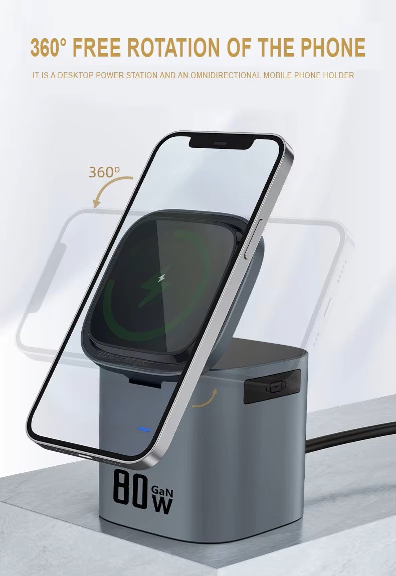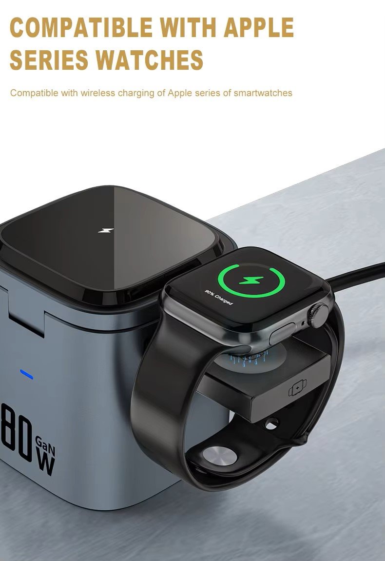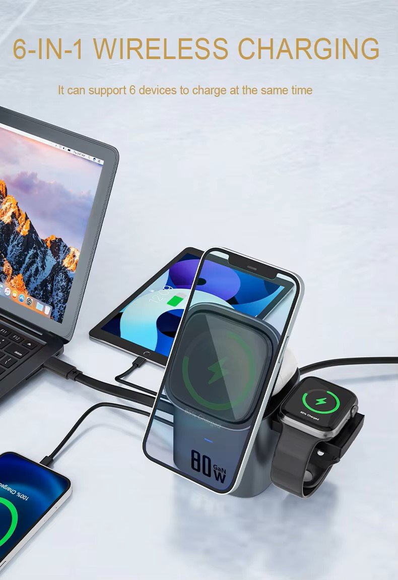 80w 6-In-1 Gallium Nitride Wireless Charger for iphone Iwatch ipad Airpods MacBook