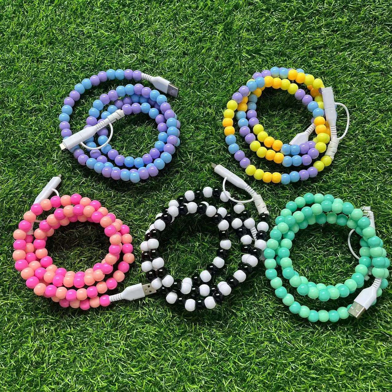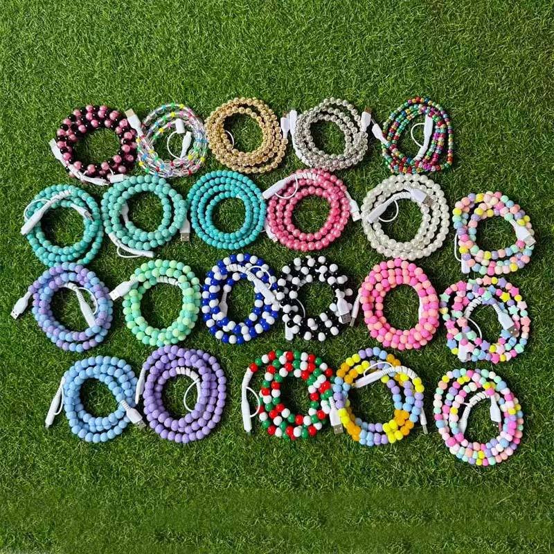 Bohemian Vintage Western Gowgirl Cowboy Style Turquoise Beaded Pearl Phone Chargers USB Dual Lightening Fast Multi Charging Cable