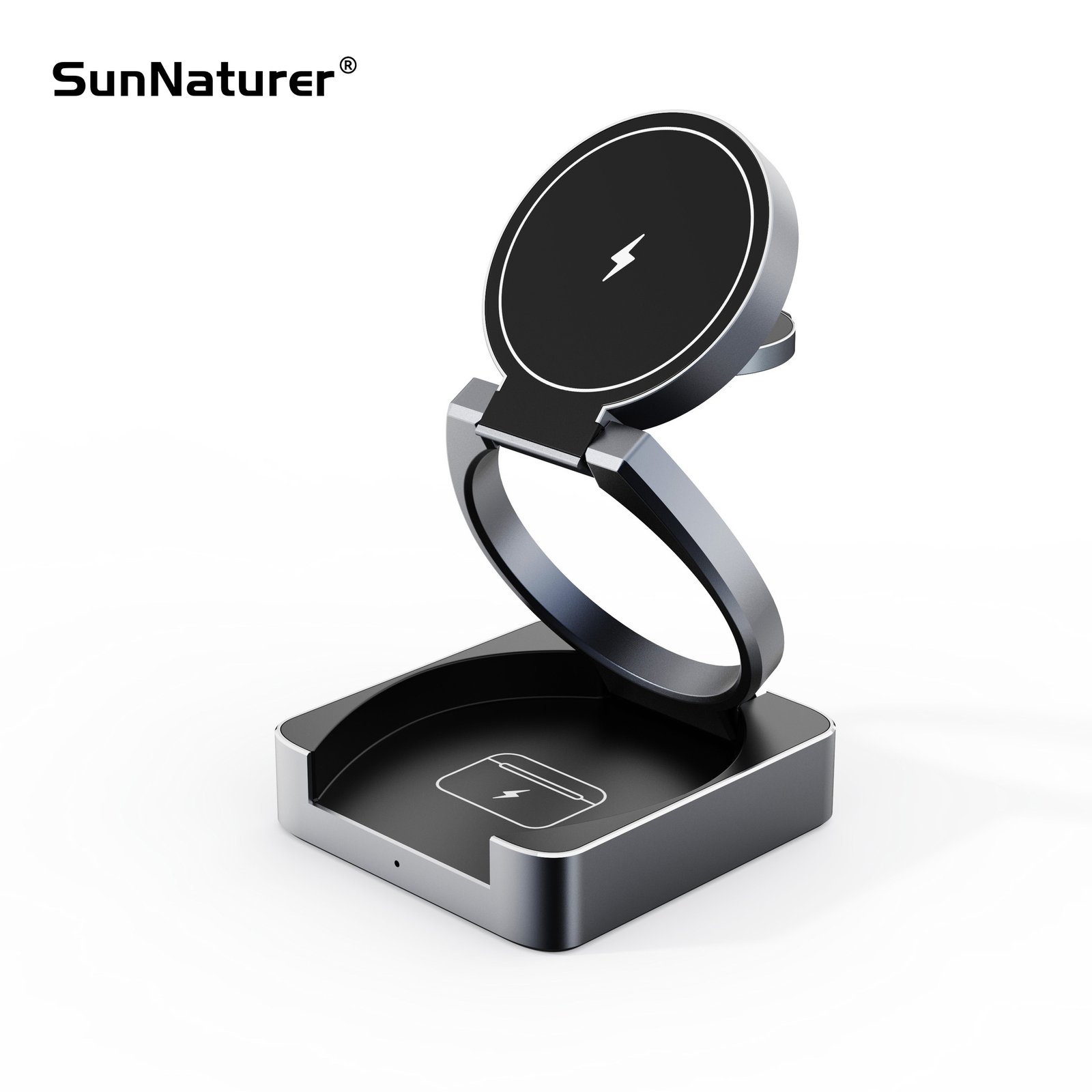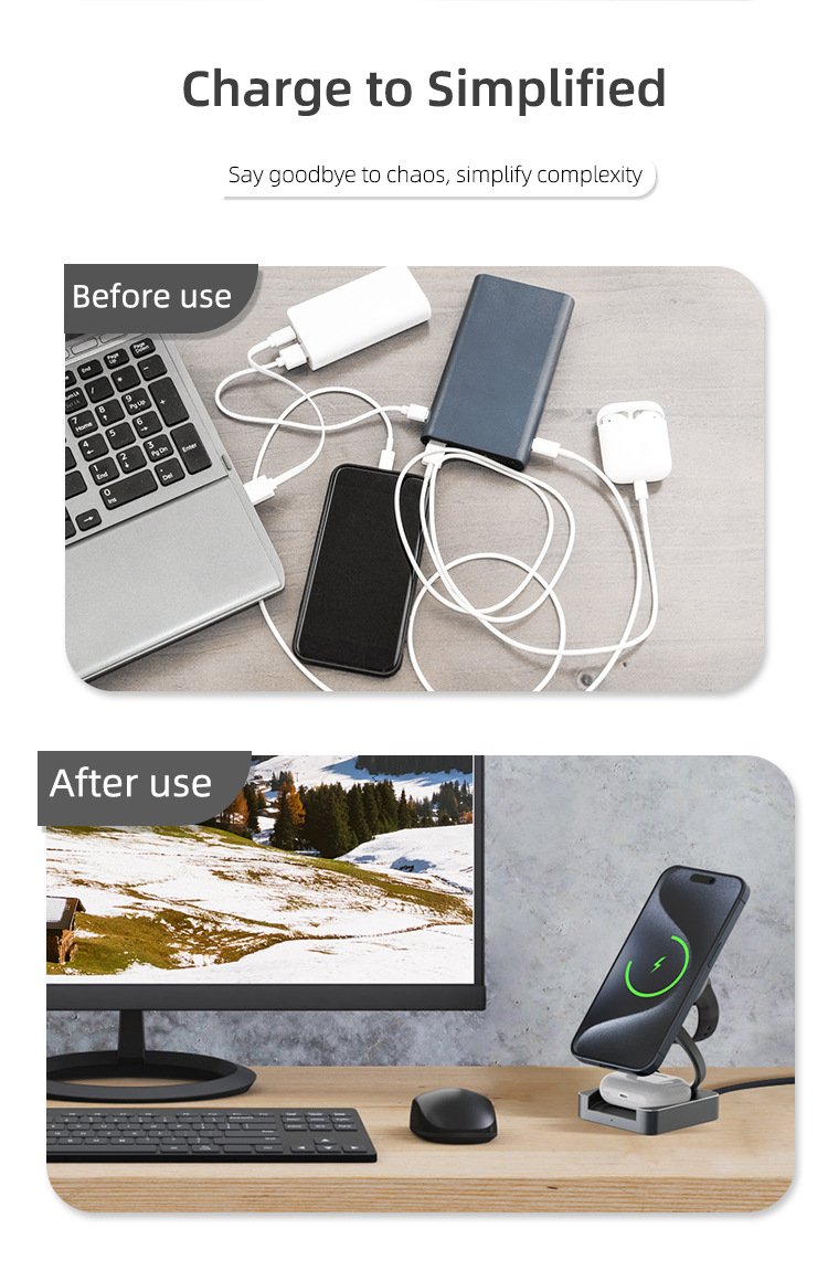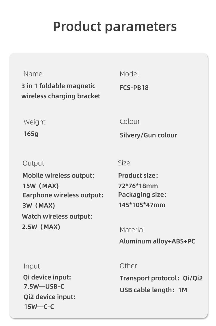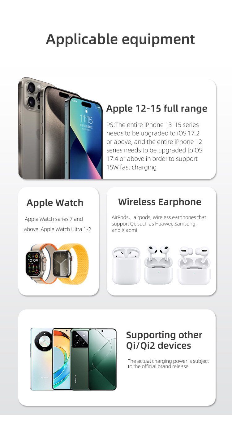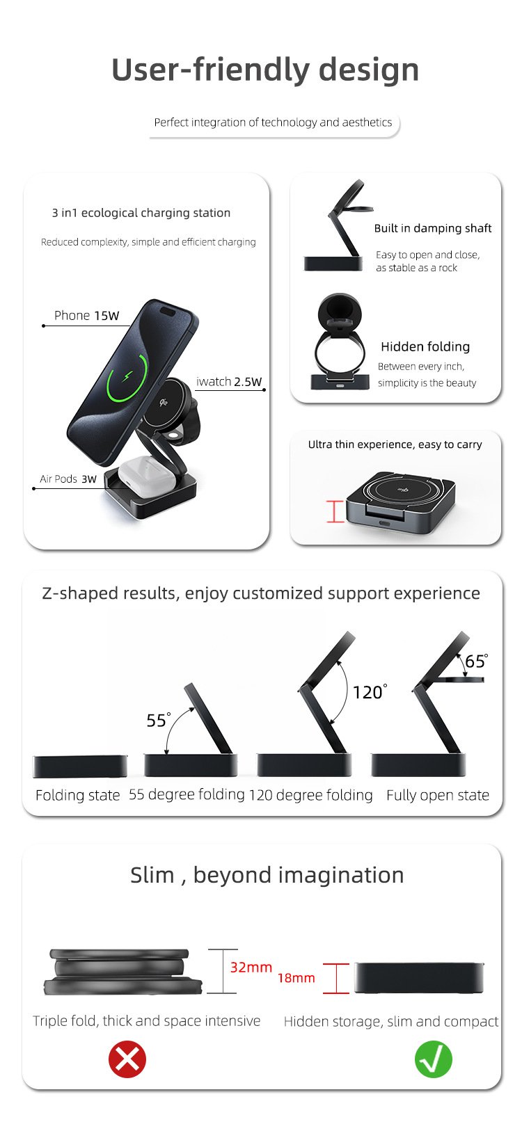 Qi2 3in1 Wireless Charging Folding Bracket Portable Travel Charger with QC3.0 PD 15W OTP OVP Multifunctional Charger