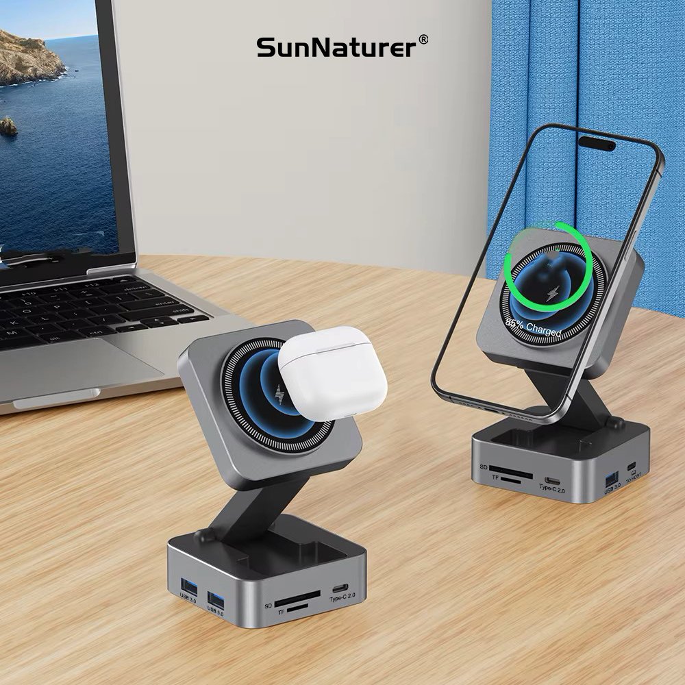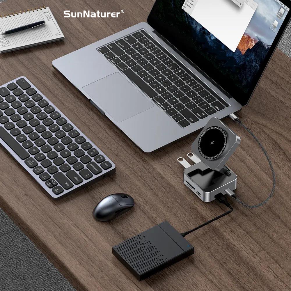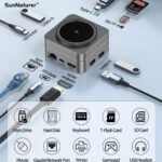 SunNaturer 10in1 USB-C HUB docking station with 4K HD4K Gigabit Ethernet USB 3.0 SD TF Card Reader 15W Wireless Charger Hub for Enhanced Connectivity